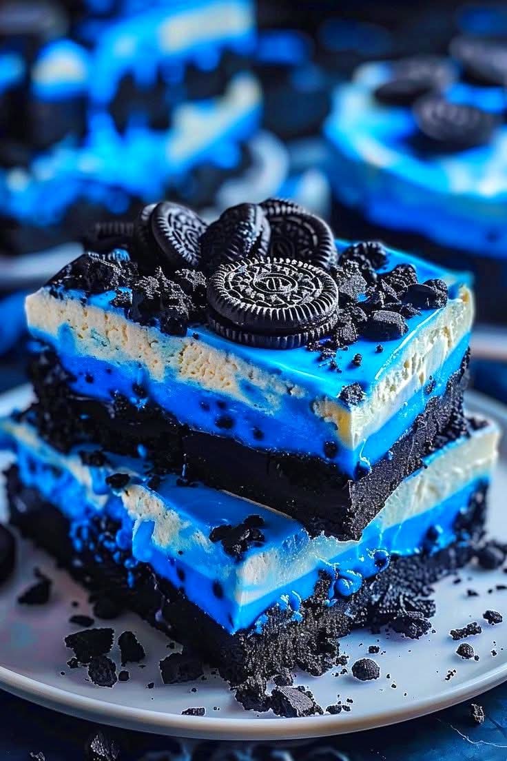 Blue Velvet Oreo Cheesecake Bars are a daring blend of comfort and sophistication. They’re no-bake (yay, easy), visually stunning, and taste like creamy, crunchy, Oreo-loaded magic. Whether you make them for a special occasion, a party centerpiece, or just to brighten a Tuesday, they’ll leave everyone asking, “Where did you get this recipe?!”