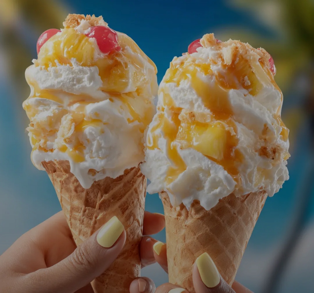 Inspired by the classic pineapple upside-down cake, this ice cream is a tropical celebration of caramelized fruit, buttery richness, and velvety smooth vanilla cream. Each scoop delivers layers of gooey pineapple caramel, buttery brown sugar, and tender cake or cookie crumbles that mimic the soft, spongey base of the original dessert. No churn needed—just stir, swirl, and freeze!