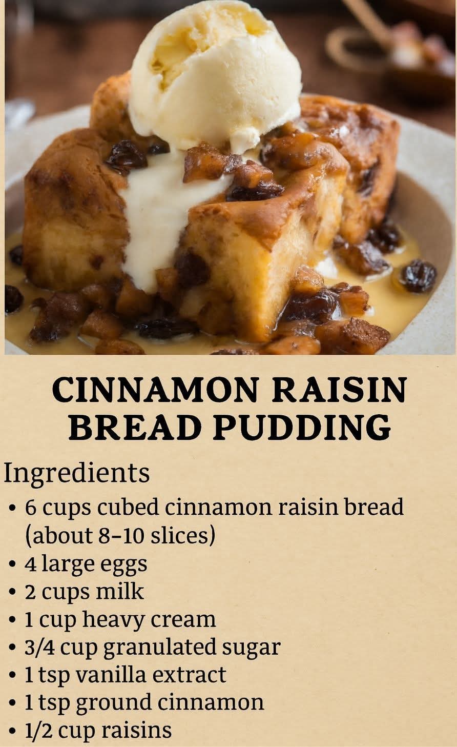 Cinnamon Raisin Bread Pudding is more than dessert. It’s a celebration of second chances — for old bread, for forgotten ingredients, and maybe even for relationships that just needed a little sweetness.