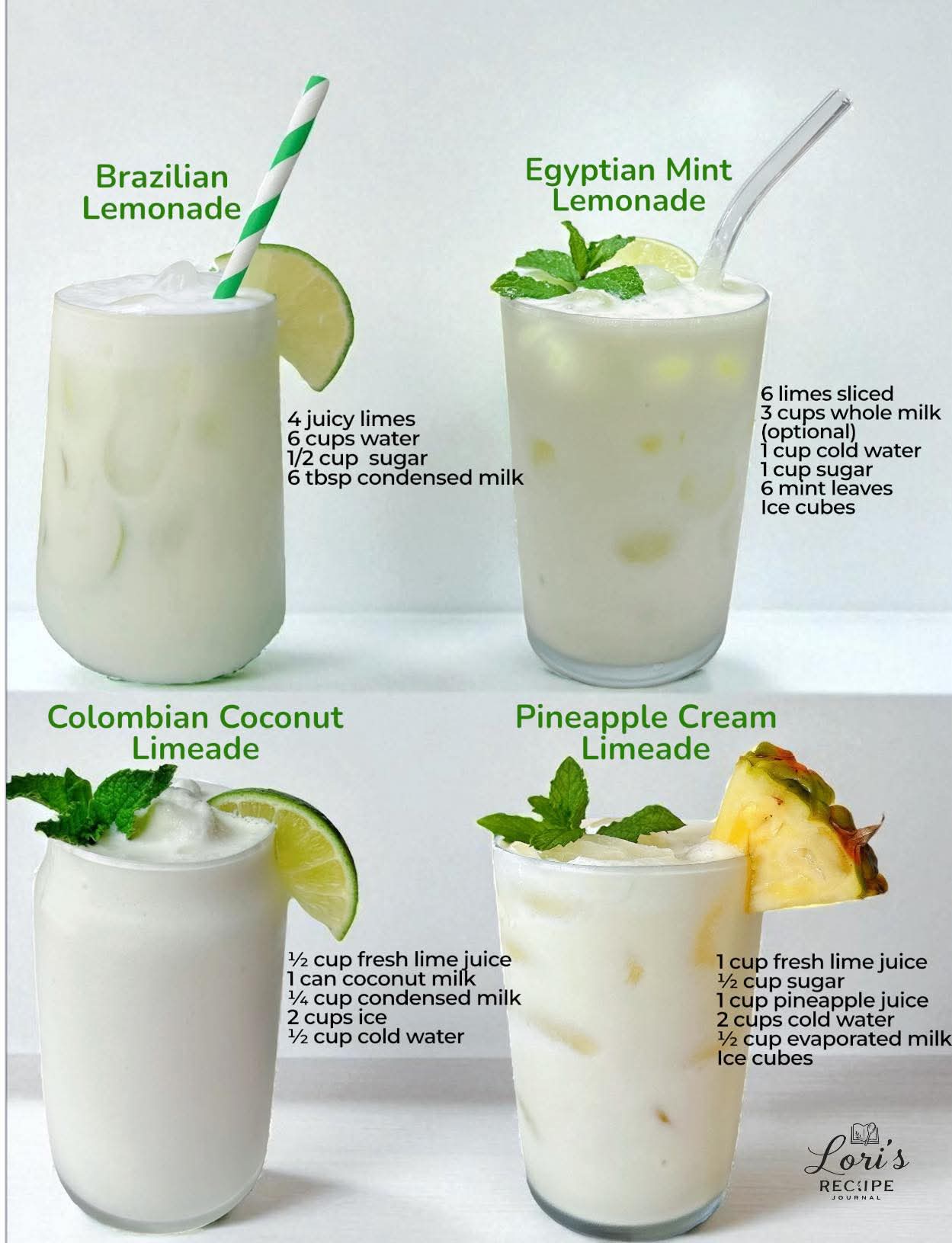 These creamy limeade drinks represent a fusion of cultures, flavors, and techniques that make them perfect for any occasion, from casual picnics to elegant dinner parties. Each drink tells a story of its origin, whether it’s the minty refreshment of Egyptian lemonade, the sweet and creamy touch of Brazilian limeade, the tropical indulgence of Colombian limonada de coco, or the exotic blend of pineapple and lime in the Pineapple Cream Limeade.