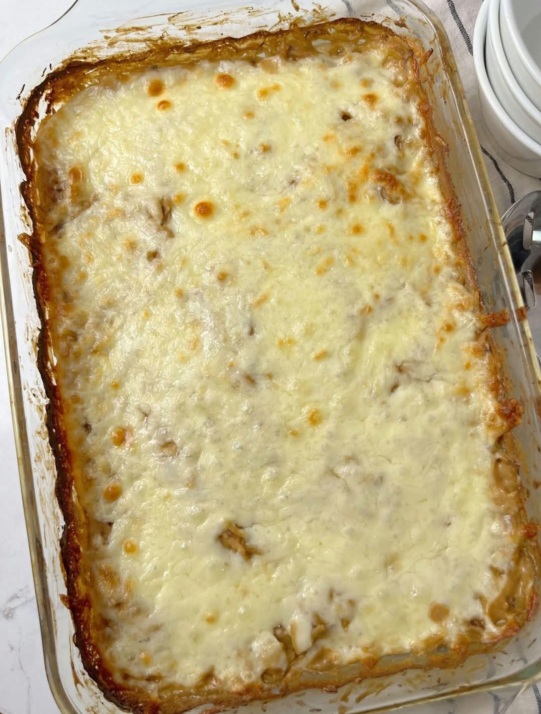 This recipe is a modern fusion of Italian Alfredo pasta and American-style casseroles — born from busy weeknights and the universal love for melted cheese over carbs. It gained popularity in family kitchens for being affordable, reheatable, and crowd-friendly.