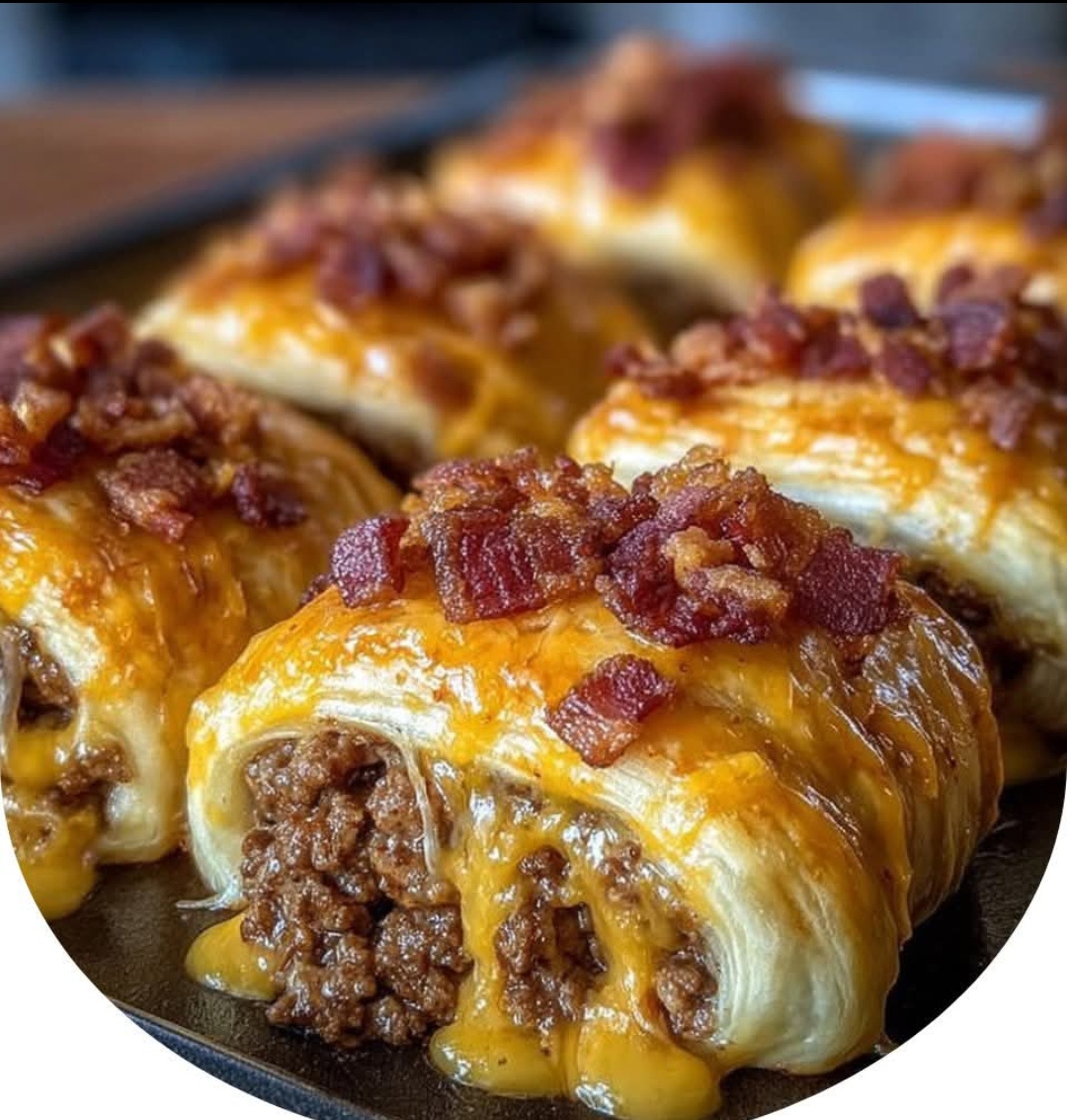 This recipe is inspired by classic American bacon cheeseburgers, but reinvented into a party-style appetizer. It borrows from cinnamon roll technique + sandwich flavor fusion — a modern TikTok-style creation that blends nostalgia with innovation!