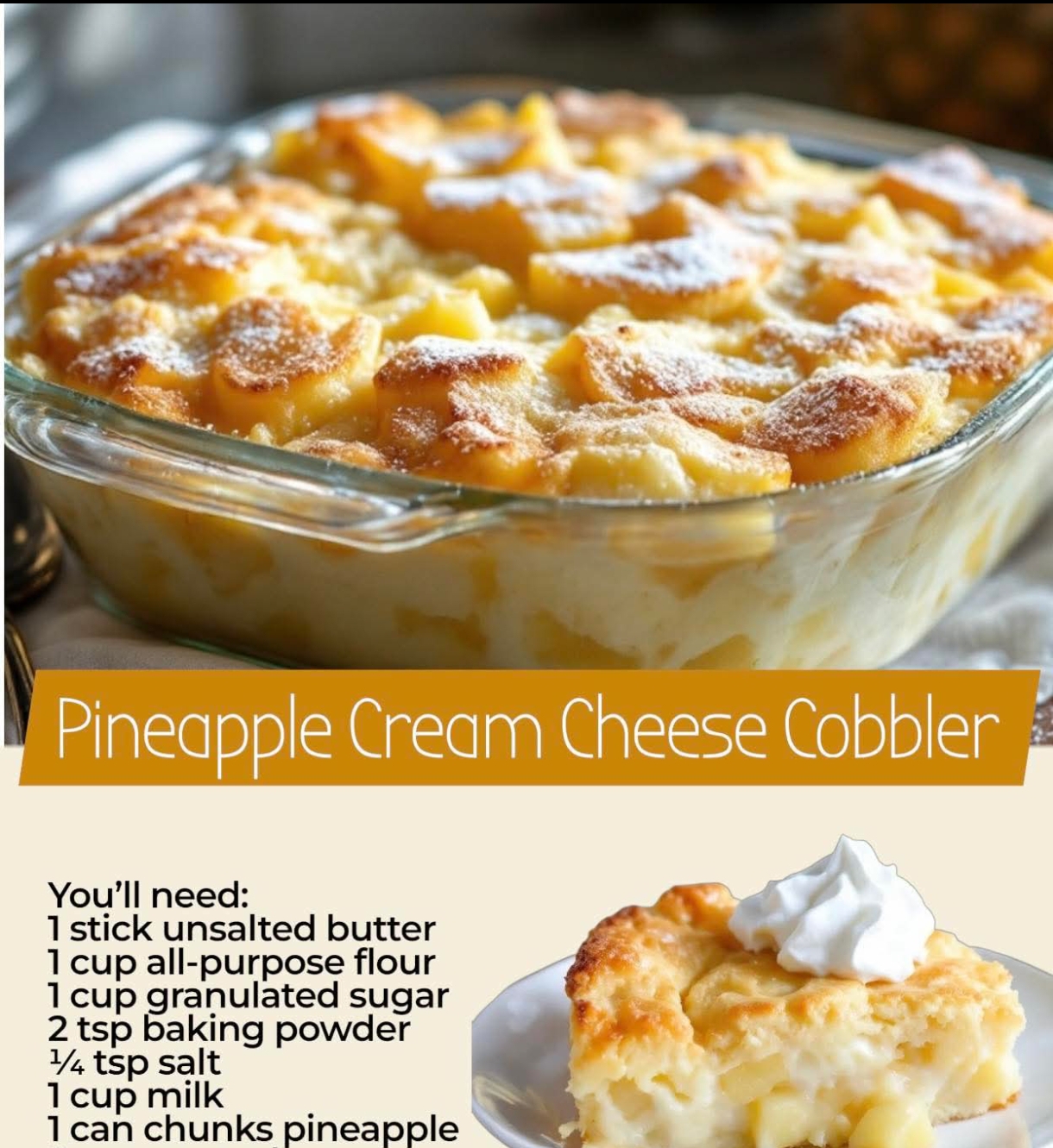 There are some desserts that feel like a warm hug. The Pineapple Cream Cheese Cobbler is one of those dishes β€” a beloved Southern-style treat infused with tropical brightness and comforting creaminess. It’s the kind of dessert you bring to potlucks, holiday gatherings, Sunday dinners, or when you just want to spoil your loved ones with something unforgettable.