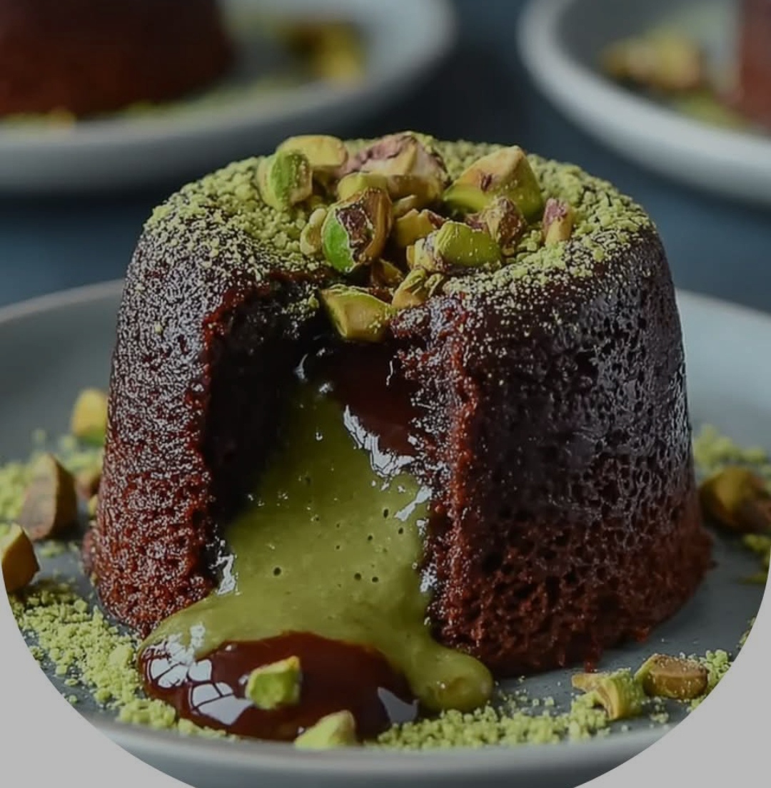 Lava cakes became popular in the 1980s thanks to French chef Michel Bras and American chef Jean-Georges Vongerichten. This pistachio version blends Mediterranean nuttiness with a French classic, creating a modern gourmet twist.