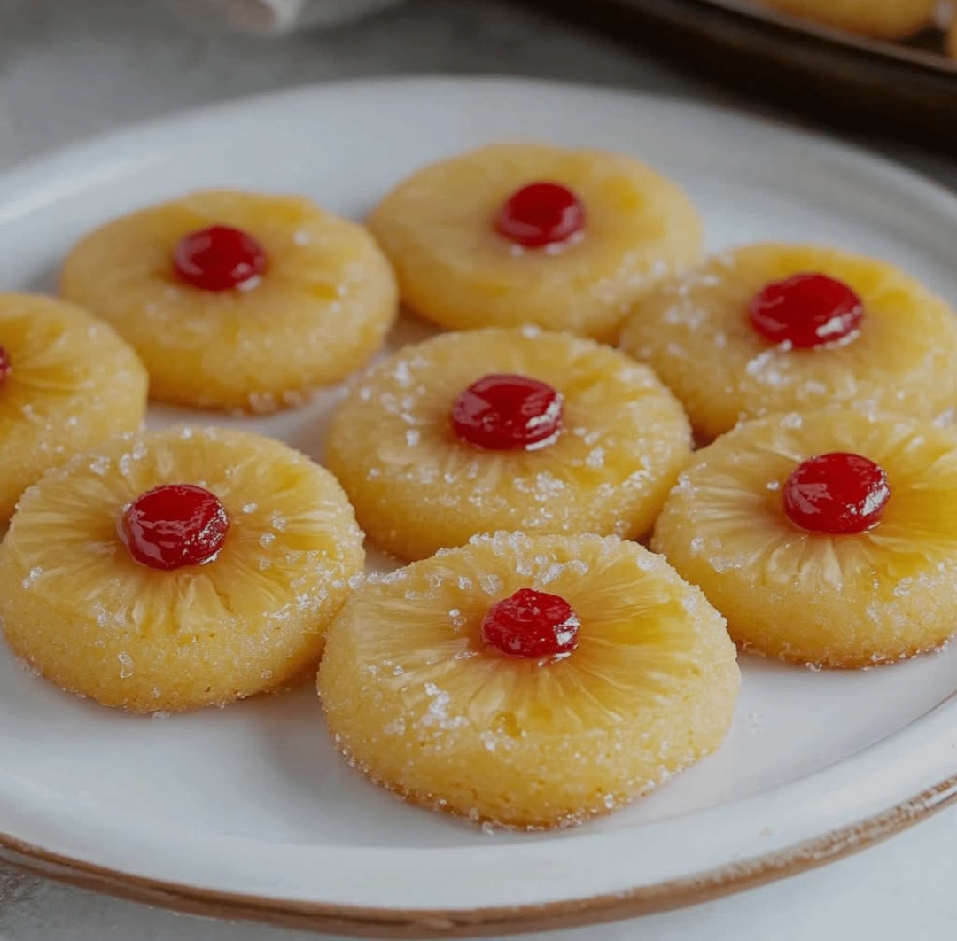 The pineapple upside-down cake became popular in the early 1900s when canned pineapple became widely available. Turning that comforting dessert into cookies is a modern reinterpretation—giving the classic flavor a fun, portionable form.