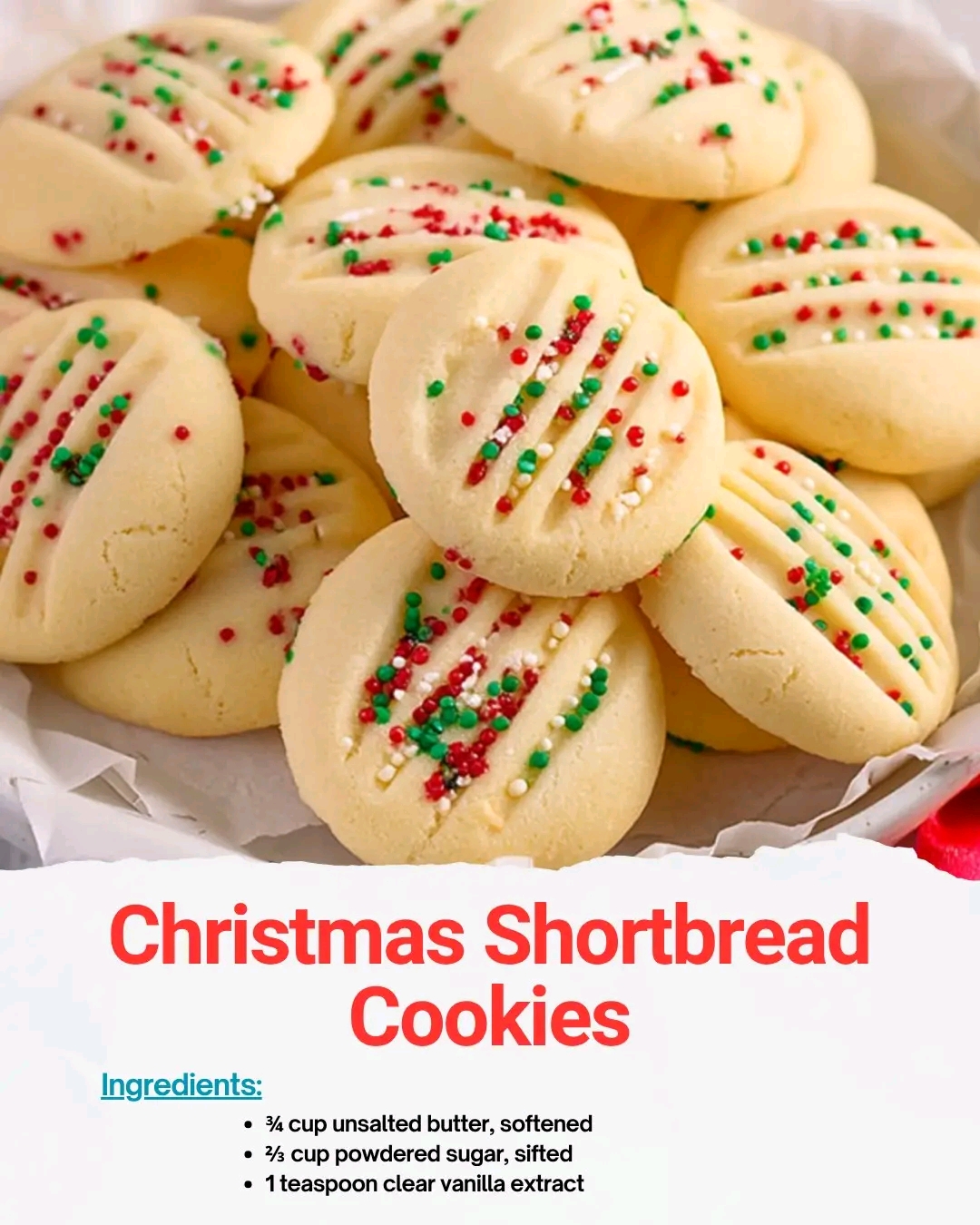 ✨ Buttery, melt-in-your-mouth shortbread sprinkled with festive holiday cheer — simple, sweet, and perfect for gifting or nibbling by the tree! These classic cookies bring a touch of elegance and tradition to your Christmas celebrations. ✨