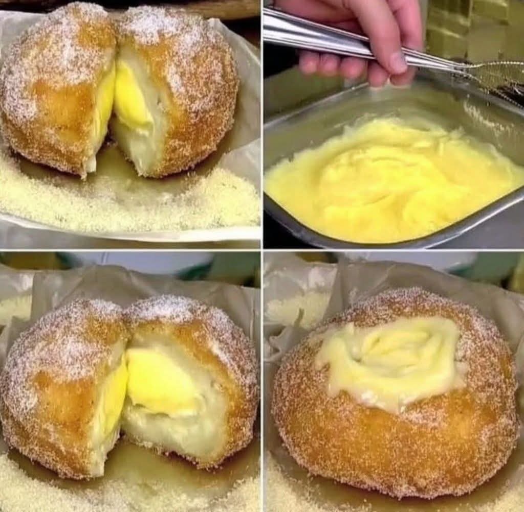 Delicious, pillowy fried dough balls filled with a silky custard — perfect hot from the pan, dusted with sugar, and dangerously easy to love. Below is a full, expanded recipe using your ingredient list (I used those amounts for the dough) plus a simple pastry cream to fill the bombs. I also include methods, tips, a short history, serving ideas for lovers (romantic touches), variations, and a concluding note.