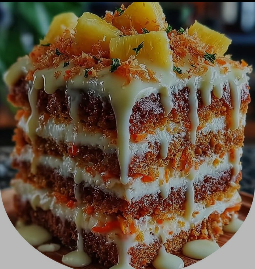 The Hawaiian Carrot Pineapple Cake is a tropical twist on the classic carrot cake, blending the warmth of cinnamon and carrots with the bright sweetness of crushed pineapple and coconut. This cake represents the perfect harmony between island freshness and homey comfort β€” a soft, moist, aromatic dessert that melts in your mouth. Ideal for birthdays, holidays, or cozy weekends, it’s a bite of paradise in every slice!