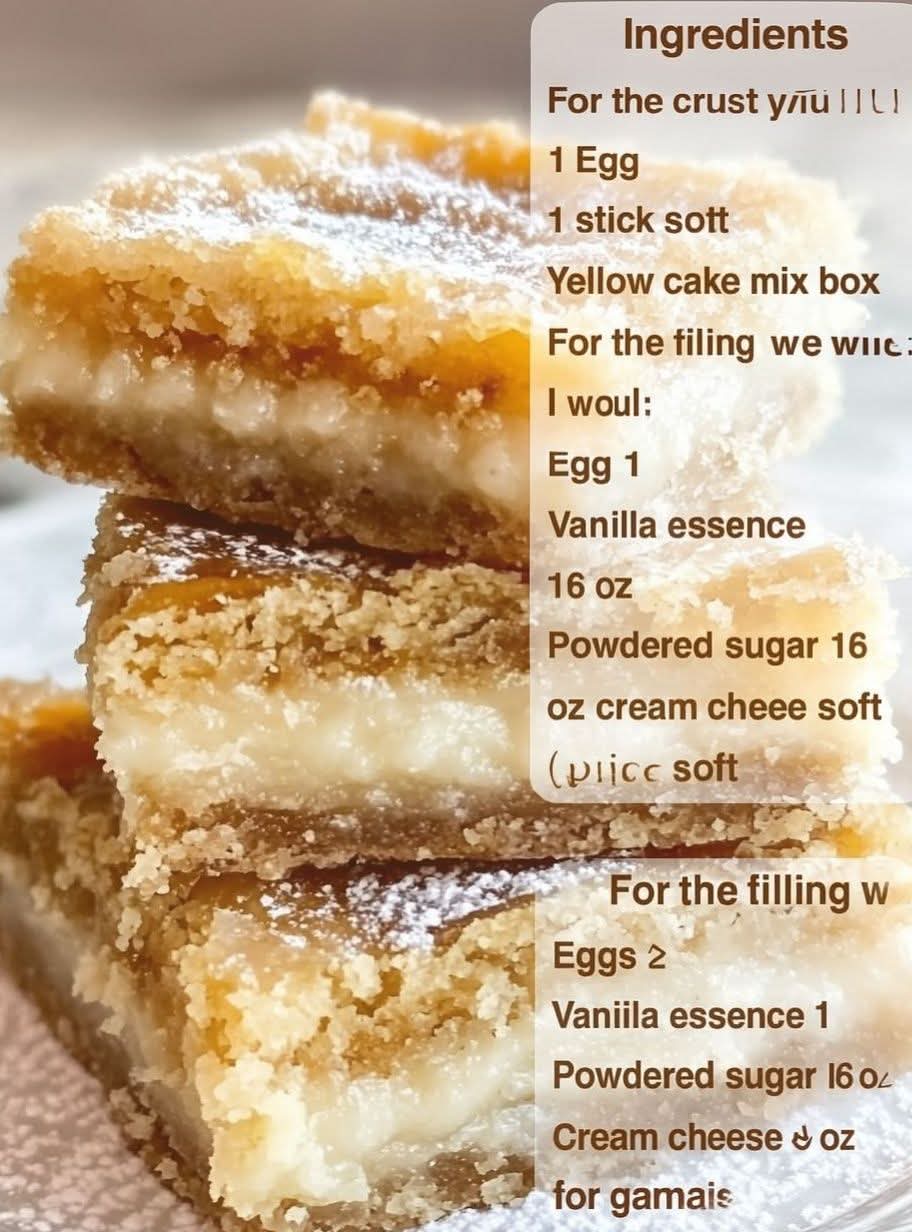 Absolutely! You’re about to get the ultimate full-bodied recipe experience for Gooey Butter Cake Bars — complete with history, ingredients, love stories, sweet memories, and step-by-step instructions. Think of this like your favorite family recipe, but written with care, heart, and a little extra butter.