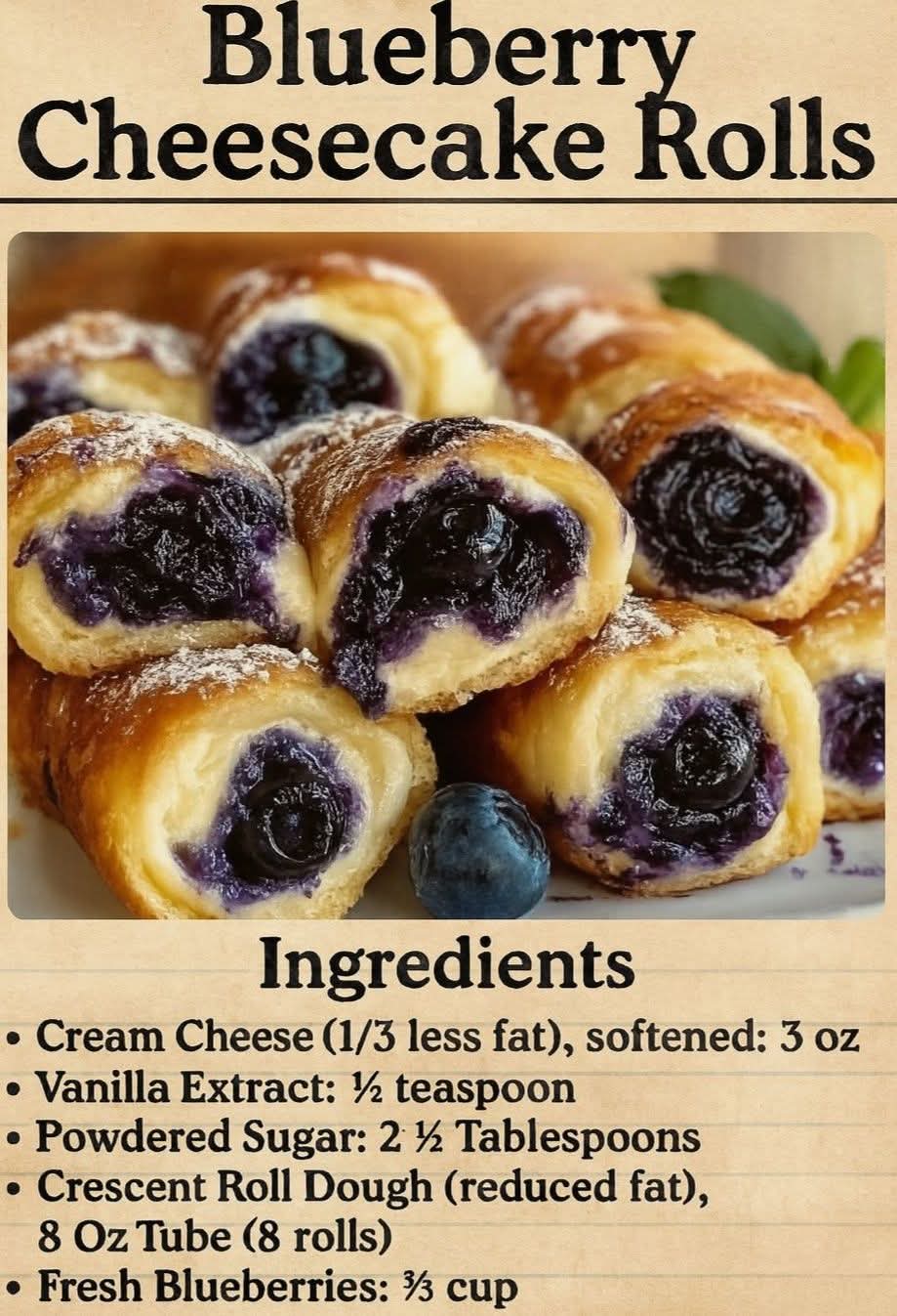Blueberry Cheesecake Rolls prove that you don’t need hours or fancy equipment to make something wonderful. With just a few ingredients and a little love, you can bake up a treat that’s gooey, golden, and full of charm. Whether you serve them at brunch, as an after-dinner delight, or sneak one as a midnight snack – they’ll bring joy in every bite.