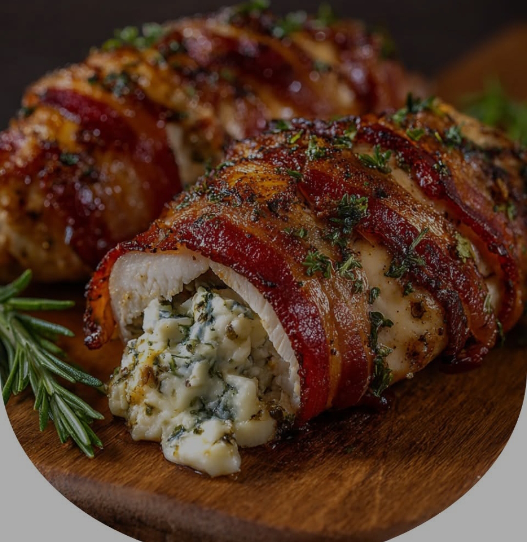 • 🍗 Bacon-Wrapped Cream Cheese Stuffed Chicken Breast