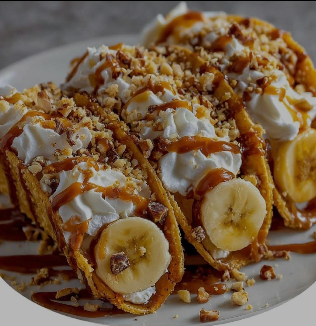 Desserts don’t always have to be ordinary—sometimes they can be playful, exciting, and whimsical! These Caramel Banana Nuts Tacos bring together the sweetness of ripe bananas, the creaminess of whipped cream, the crunch of roasted nuts, and the rich, buttery taste of caramel. All of this comes wrapped in a crispy taco shell, making it a fun fusion dessert that’s as delightful to look at as it is to eat. Perfect for parties, family gatherings, or even as a quick indulgent treat after dinner.