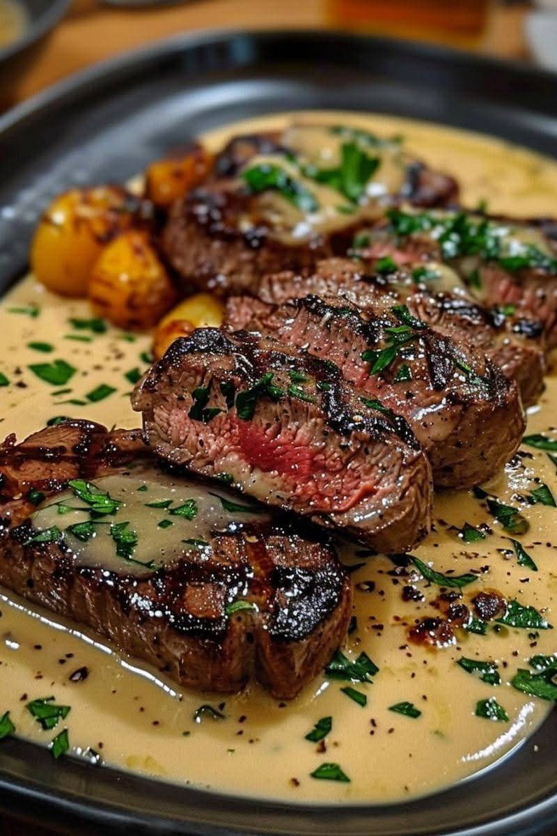 Steak with Garlic Cream Sauce is more than just a meal β itβs an experience. The juicy tenderness of the steak pairs beautifully with the creamy, garlicky richness of the sauce, creating a dish that delights both the heart and the palate. Whether cooked for family, friends, or a special someone, this recipe is sure to impress every time.