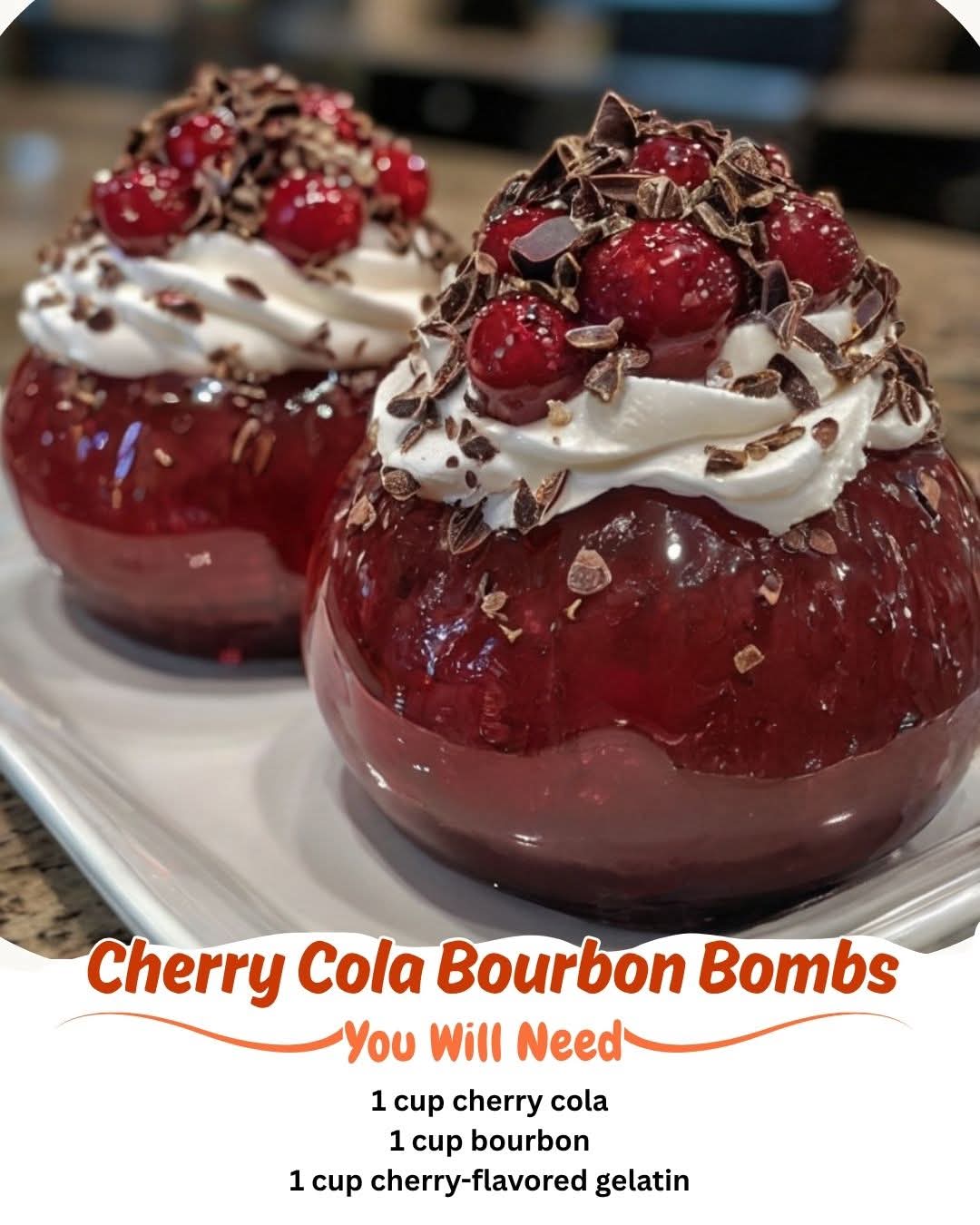 Cherry Cola Bourbon Bombs are a fun and indulgent dessert that combines the nostalgic flavors of cherry cola with the warmth of bourbon, all set in a delightful gelatin-based treat. This recipe is perfect for those who love cocktails but want to enjoy their favorite flavors in a unique, shareable dessert form. The combination of fizzy cherry cola, smooth bourbon, fresh cherries, and a hint of chocolate and whipped cream makes these bombs an irresistible party hit or a creative after-dinner treat.