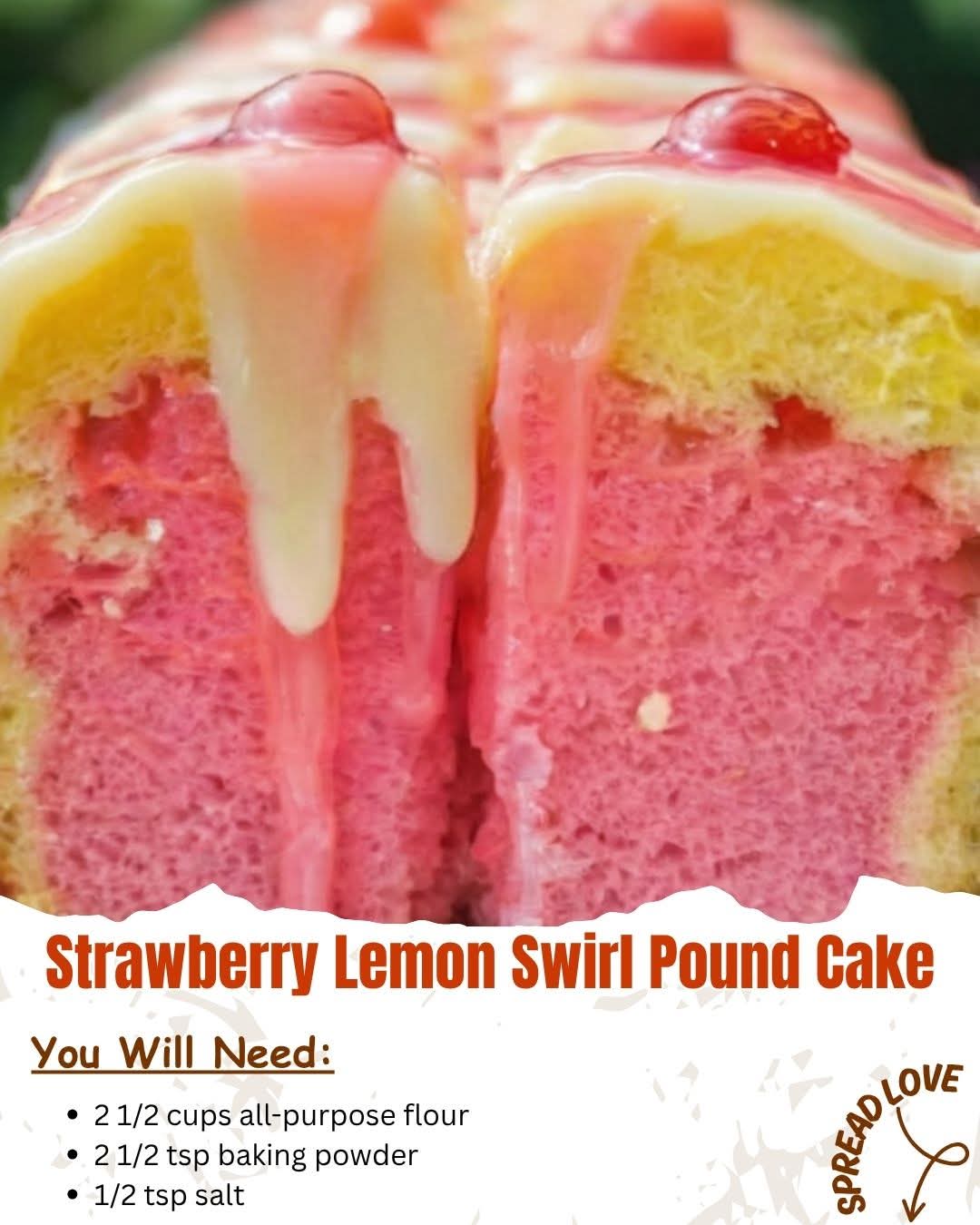 🍓🍋 Strawberry Lemon Swirl Pound Cake