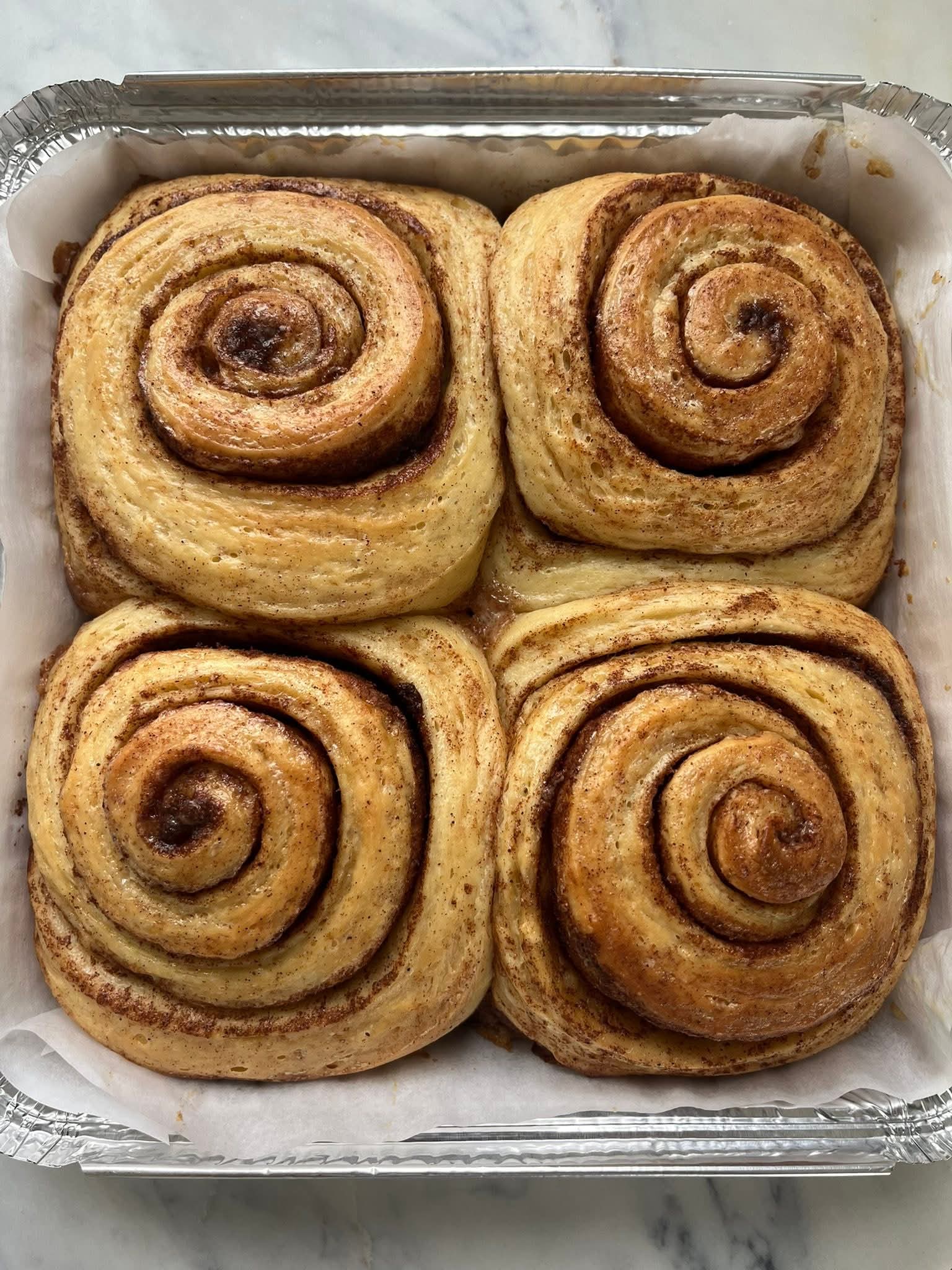 The Yudane method, as used in Carter’s Blonde rolls, is an adaptation from Japanese bread-making techniques that rely on the water roux to create incredibly soft and fluffy breads. This method helps trap moisture in the dough, resulting in a much more tender and pillowy cinnamon roll.