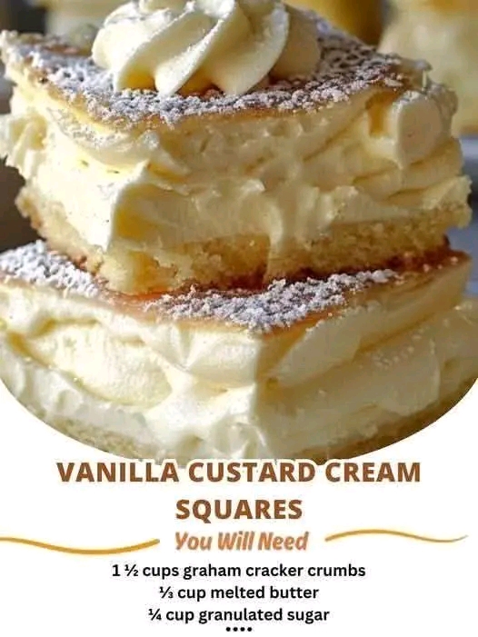 Vanilla Custard Cream Squares are the epitome of indulgence, combining a rich, velvety custard filling with a buttery, crumbly graham cracker crust. These squares are a perfect balance of creamy and crisp, with the sweet, aromatic flavor of vanilla shining through in every bite. Whether you’re serving them at a gathering, a special occasion, or as a delightful dessert after a family dinner, these treats are guaranteed to wow your guests.