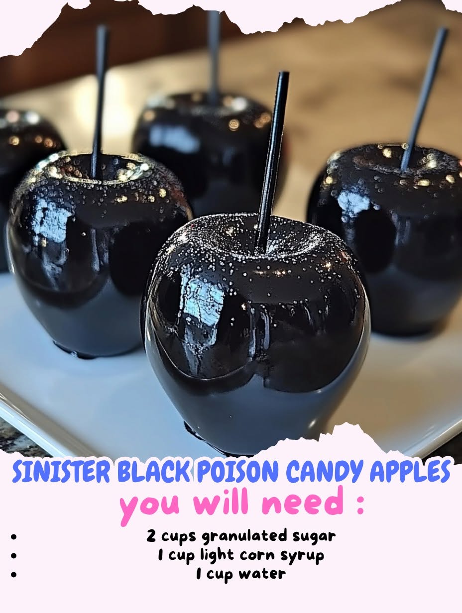 Halloween is all about embracing the spooky, the sinister, and the sugary. What could be better than sinking your teeth into a dark, glossy, and deliciously eerie black candy apple? These Sinister Black Poison Candy Apples are the perfect treat to give your Halloween night an extra touch of mystery and allure. The shiny, jet-black exterior with a sweet, crunchy coating hides a crisp apple inside, making it a delicious yet ominous snack. Whether you’re hosting a Halloween party or simply indulging in some festive fun, these apples are guaranteed to make a statement.