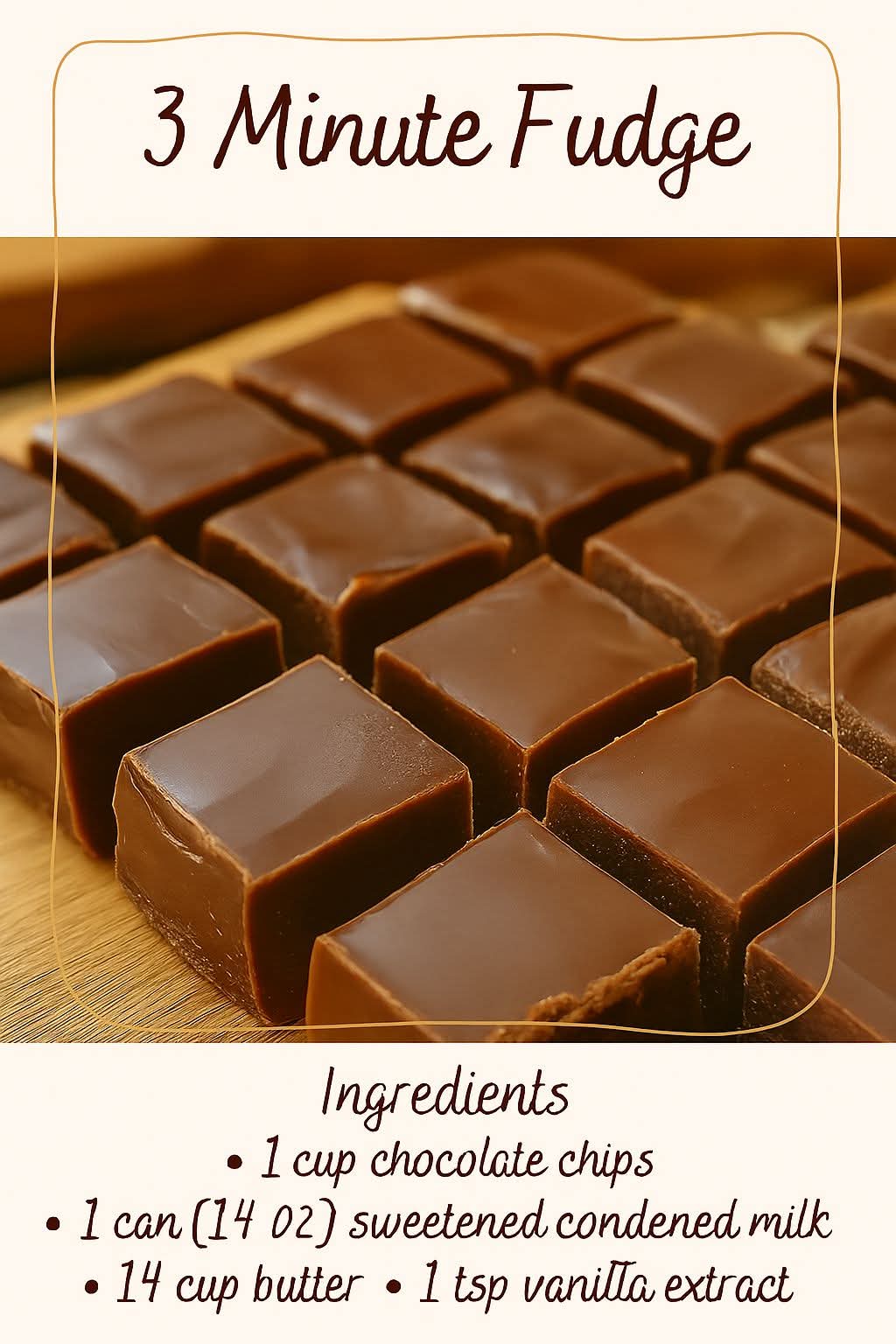This 3-minute fudge is a testament to how simplicity can yield delicious results. With only a few ingredients and a few minutes of effort, you can create a rich, creamy fudge that will satisfy your sweet tooth. It’s perfect for busy days, gift-giving, or just when you need a quick chocolate fix. The flexibility of this recipe means you can experiment with different add-ins or toppings, so it can be customized to your liking every time.