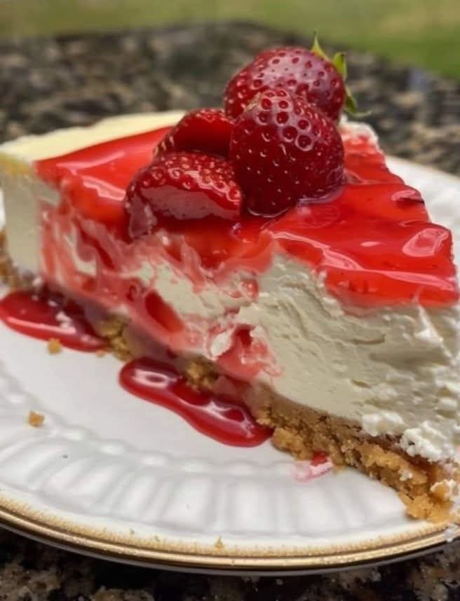 The layers of the cheesecake come together beautifully in the following order: a buttery, crunchy graham cracker crust at the bottom, followed by a rich, creamy filling, and finally crowned with a layer of fresh strawberries or strawberry sauce. When cut, the cheesecake should have a smooth, velvety texture with a subtle tang from the cream cheese and a sweet, refreshing burst from the strawberries. The slight tartness of the strawberries balances the richness of the cream cheese, making every bite a perfect harmony of flavors.