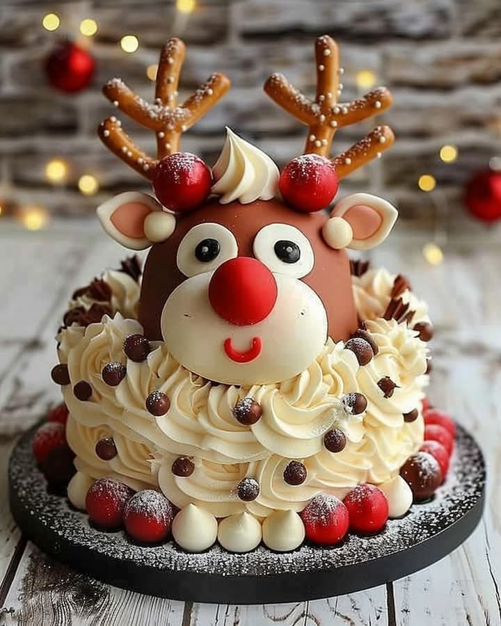 This cake celebrates that timeless character, turning his famous red nose and antlers into delightful cake decorations. The inspiration comes from the whimsy and magic of the Christmas season, blending childhood nostalgia with the joy of baking.