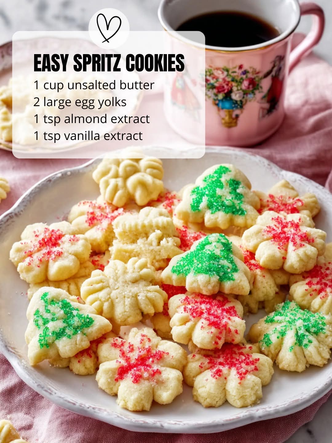 Les cookies spritz remontent à la tradition allemande du “Spritzgebäck”, des biscuits finement décorés qui étaient servis pendant les fêtes de Noël. Le nom “spritz” provient du mot allemand “spritzen”, qui signifie “presser” ou “projeter”, une référence à la manière dont la pâte est pressée à travers la presse pour obtenir des formes variées. En Italie, ces cookies sont également populaires sous le nom de “biscotti di spritz”, et bien qu’ils soient traditionnellement associés aux fêtes de fin d’année, ils sont désormais consommés toute l’année.