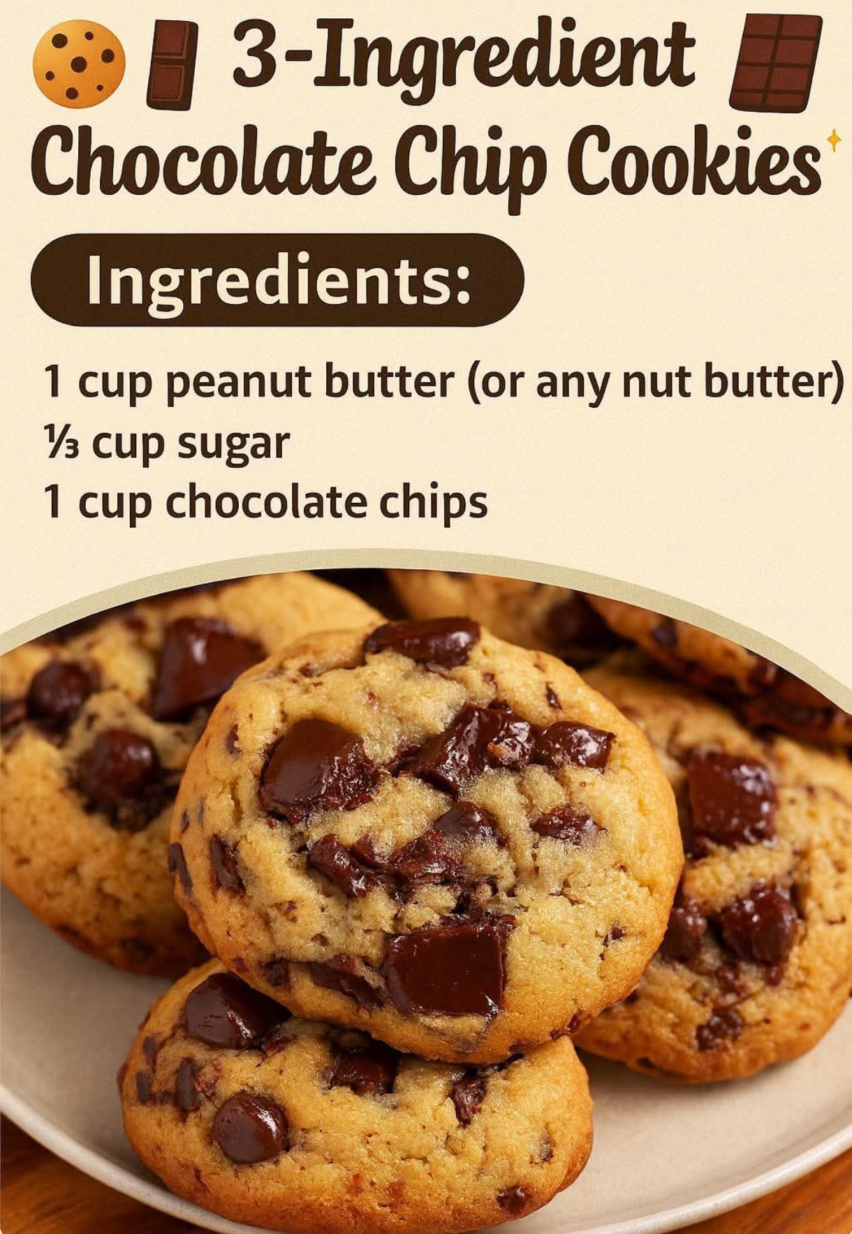 🍪🍫 3-Ingredient Chocolate Chip Cookies – Full Recipe