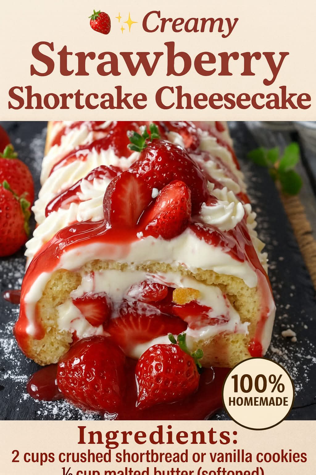 🍓✨ Creamy Strawberry Shortcake Cheesecake