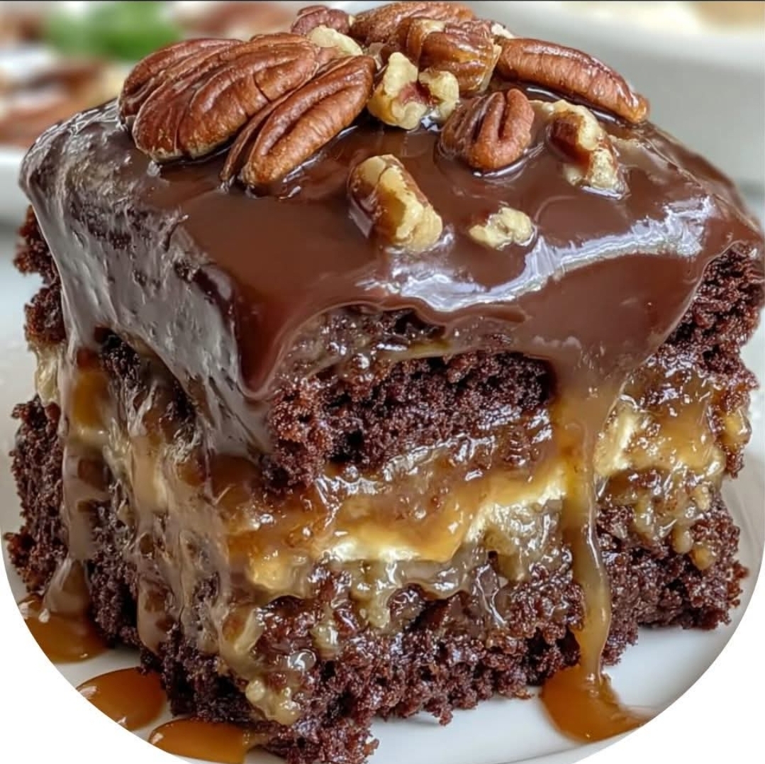 The Turtle Cake is a legendary dessert, a masterpiece of contrasting textures and flavors that has graced potlucks, family gatherings, and holiday tables for decades. Its name comes from the famous “Turtles” candies, which feature a cluster of pecans topped with caramel and enrobed in chocolate. This cake brilliantly captures that same delightful combination in a rich, decadent, and incredibly easy-to-make form. By starting with a simple boxed mix, this recipe eliminates the fuss of baking from scratch while delivering a homemade taste that is sure to impress. It is the perfect recipe for both novice bakers and seasoned pros looking for a guaranteed crowd-pleaser.