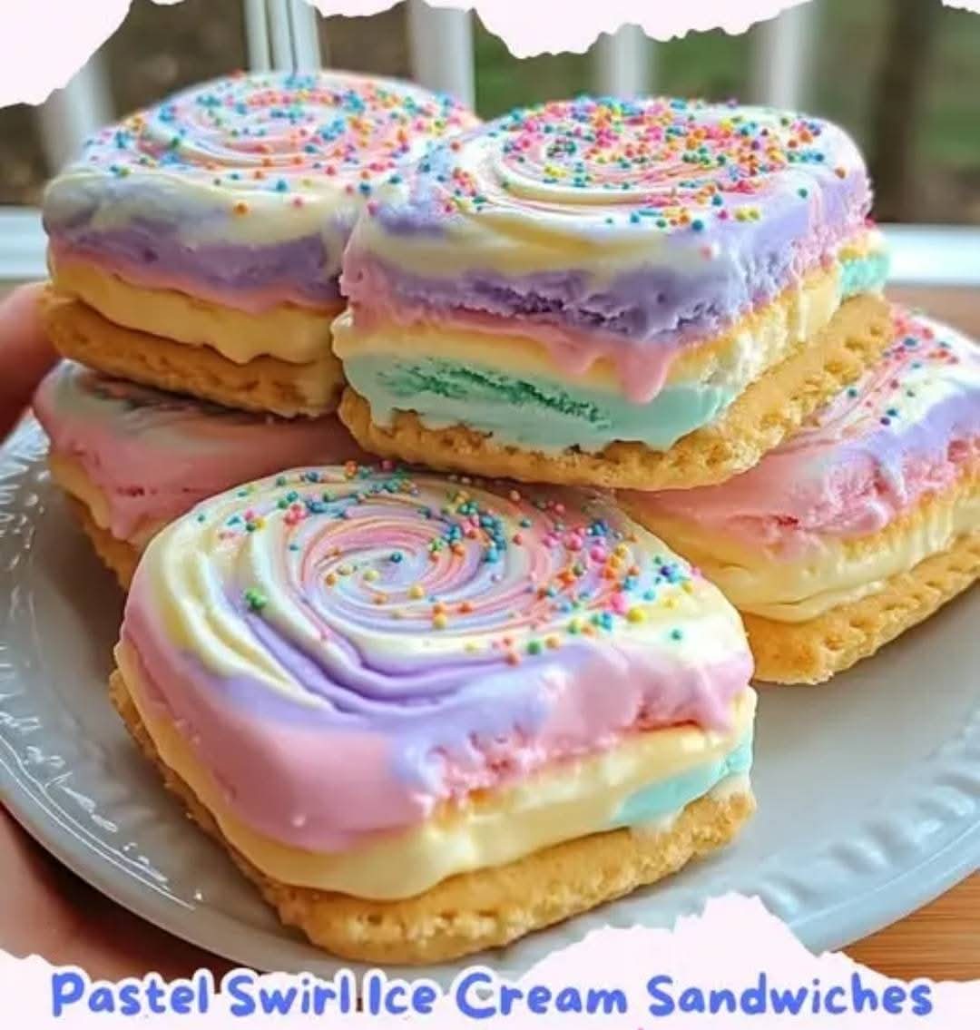 Pastel Swirl Ice Cream Sandwiches bring a playful and visually stunning twist to a classic dessert. The light, creamy texture of the homemade ice cream pairs beautifully with the crunch of graham crackers or soft sugar cookies. Whether you’re serving these at a birthday party, a summer barbecue, or just as a fun treat for the family, these ice cream sandwiches are sure to become a favorite.