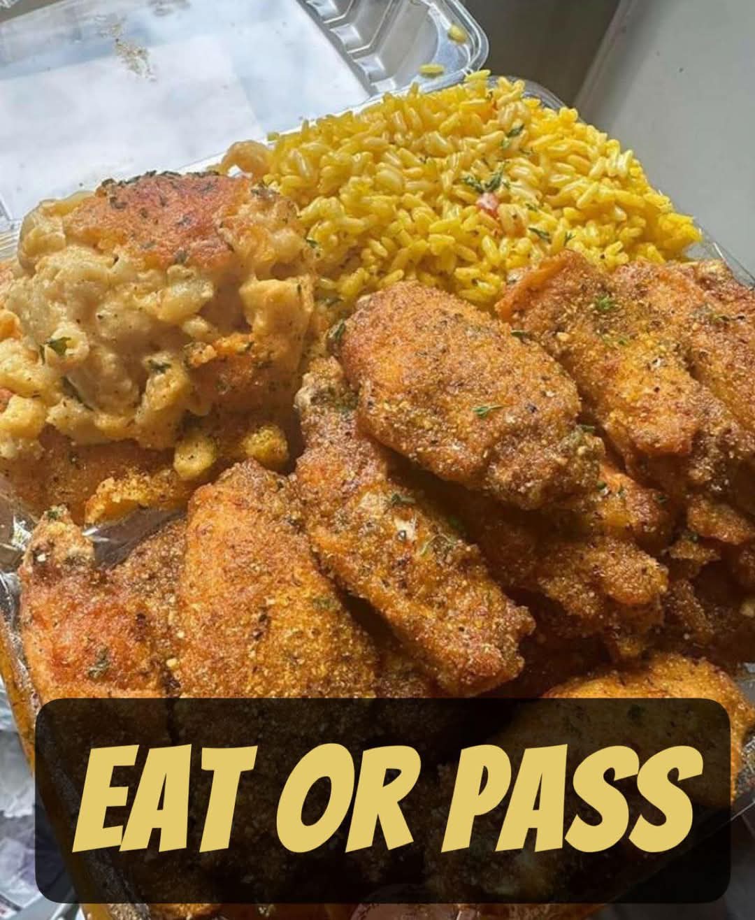 1. Family Style: On large platter, place yellow rice as base layer, macaroni to one side, wings piled high in center.