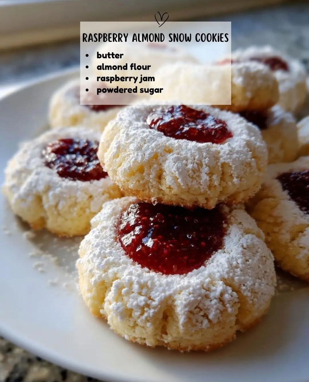 Almond Raspberry Thumbprint Cookies are a timeless treat that combines buttery richness, tender almond texture, and the sparkling sweetness of ruby-red jam. Each cookie forms a tiny edible nest, cradling a spoonful of jam like a jewel. Soft, lightly sweet, and dusted with powdered sugar, these cookies feel festive no matter the season—perfect for holidays, gatherings, gift boxes, or simply enjoying with tea.