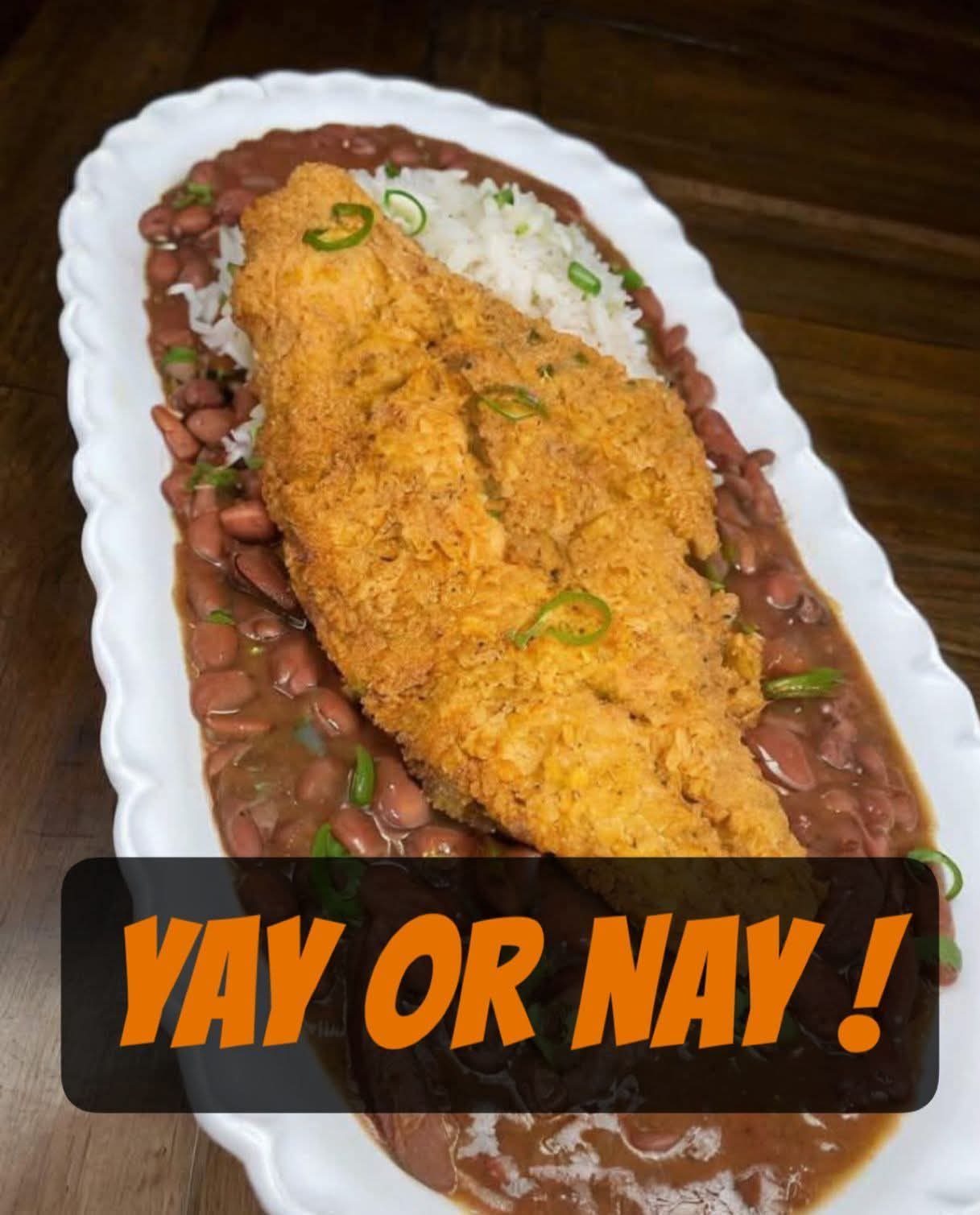 YAY! This is a beloved, soul-satisfying classic of Southern American cuisine. The combination of crispy, savory catfish with creamy, spiced red beans and fluffy rice creates a harmony of textures and flavors that is both comforting and celebratory.