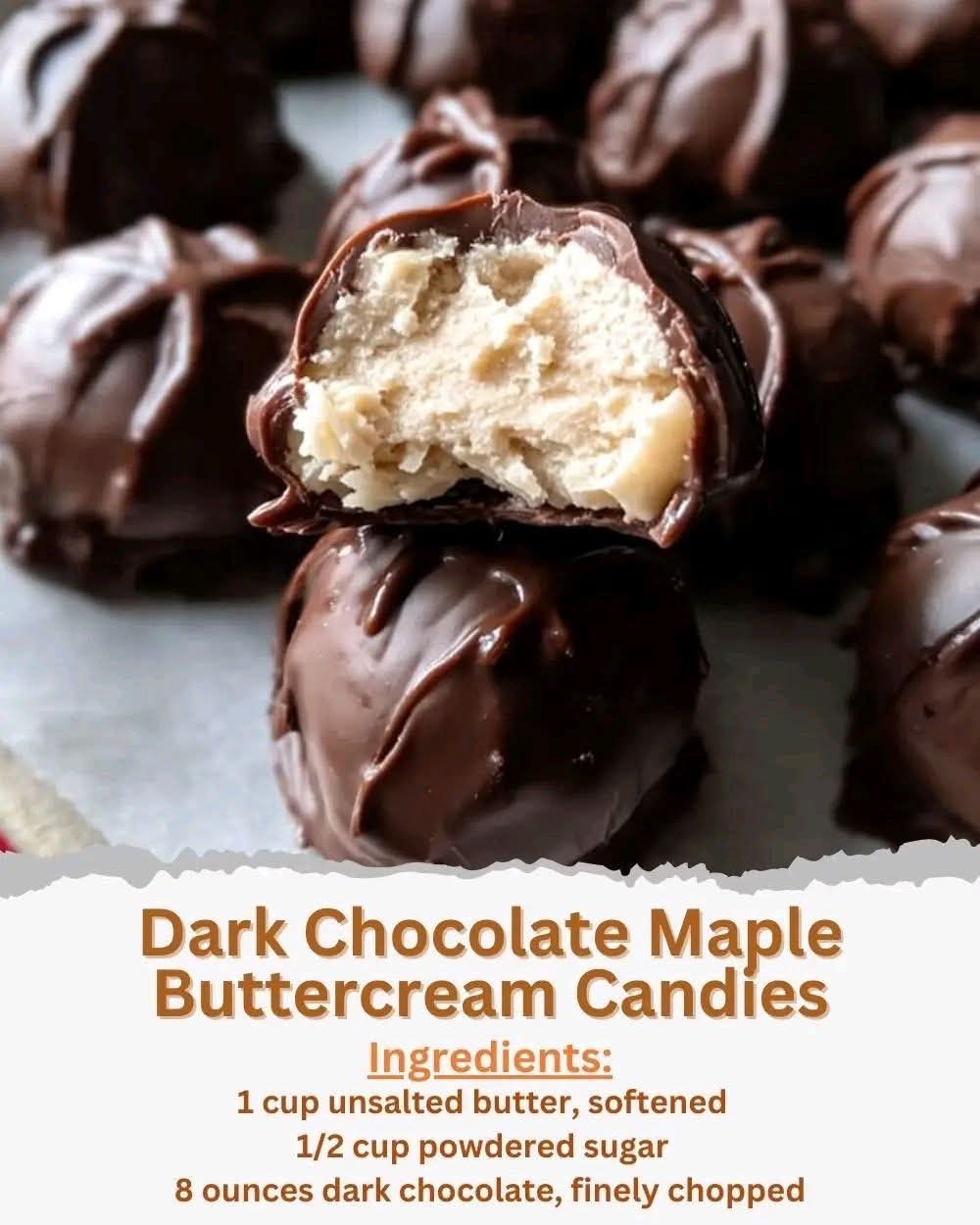 Dark Chocolate Maple Buttercream Candies combine the richness of dark chocolate with the smooth sweetness of maple syrup, all wrapped up in a decadent, buttery center. These candies are the perfect treat for anyone who appreciates the deep flavor of dark chocolate paired with a hint of natural maple goodness. Whether you’re making them for a special occasion, a holiday treat, or just because, they are sure to impress anyone with a sweet tooth.