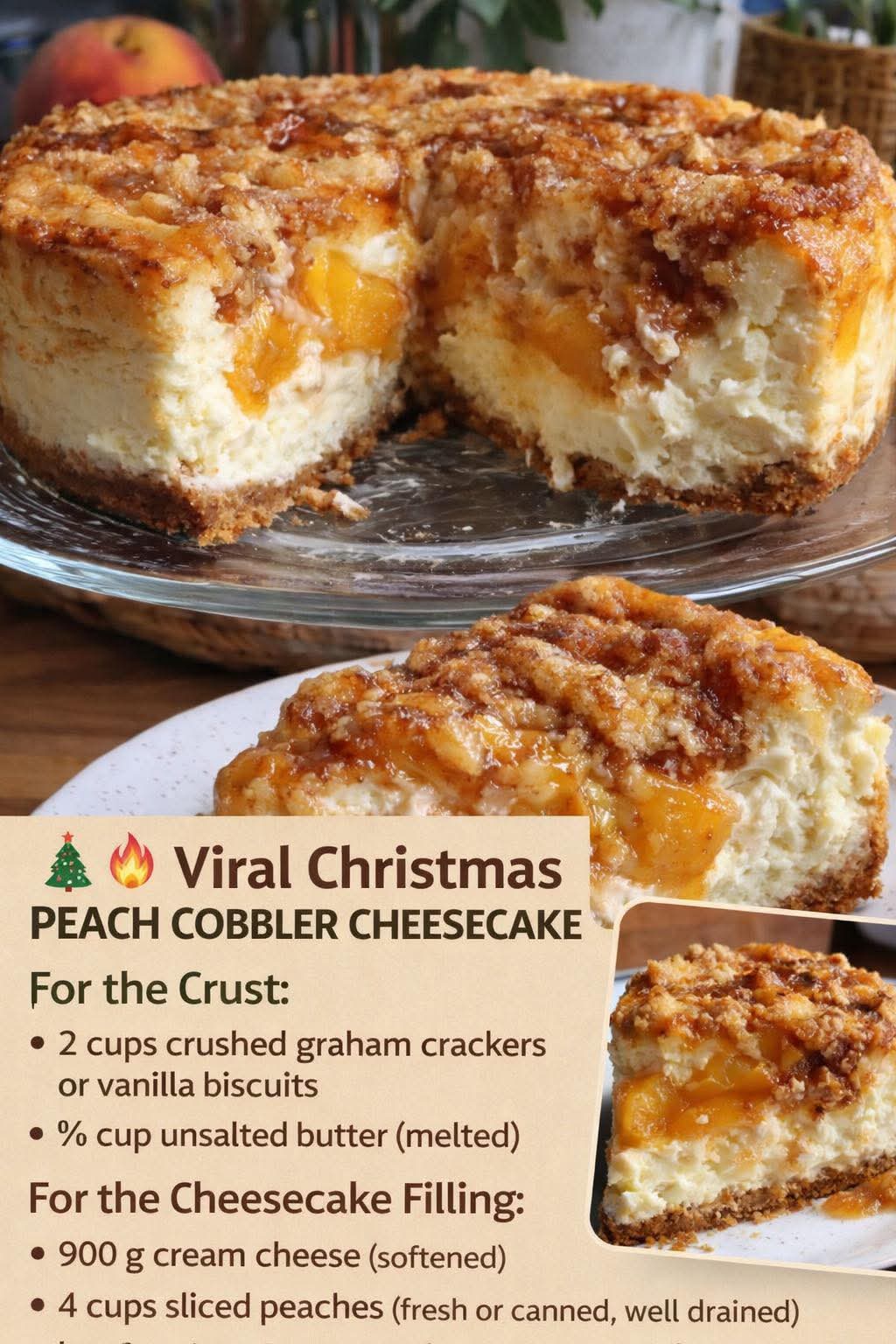 🎄🔥 Viral Christmas Peach Cobbler Cheesecake
