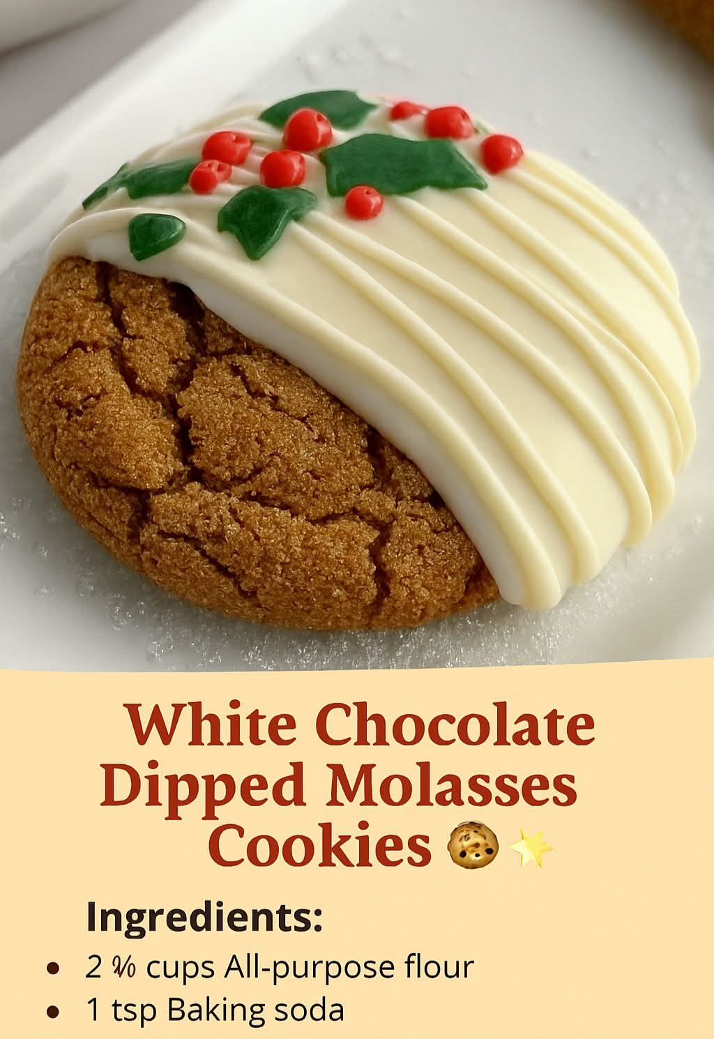 As winter approaches and the festive season is in full swing, there’s nothing quite like the warmth of freshly baked cookies filling the air with the aromas of cinnamon, ginger, and cloves. These White Chocolate Dipped Molasses Cookies are the perfect embodiment of holiday cheer, blending the deep, rich flavors of molasses with a sweet touch of white chocolate. Soft, chewy, and full of warmth, this cookie is a must-try for anyone looking to bring a bit of sweetness and spice to their holiday gatherings.