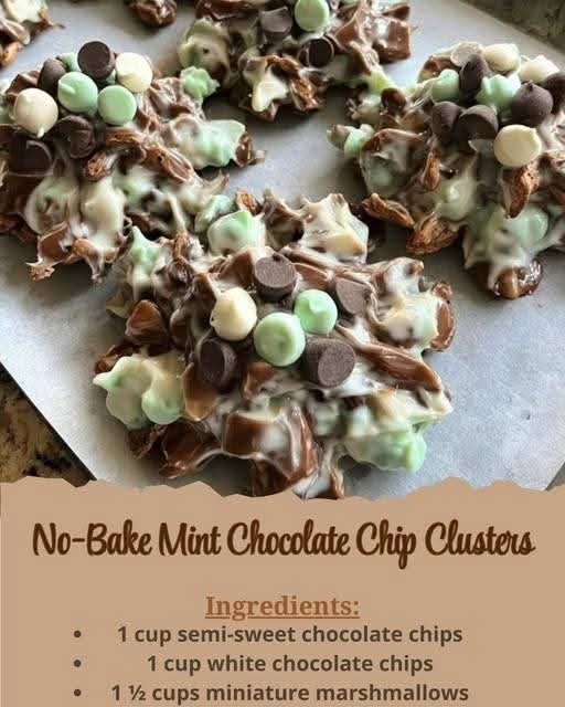 A sweet, crunchy, and minty treat that melts in your mouth! These No-Bake Mint Chocolate Chip Clusters are a perfect combination of rich chocolate, creamy white chocolate, refreshing peppermint, soft marshmallows, and crunchy pecans. Ideal for quick desserts, festive gatherings, or just satisfying your sweet tooth, this recipe requires no oven, making it an easy and fun activity for all ages.