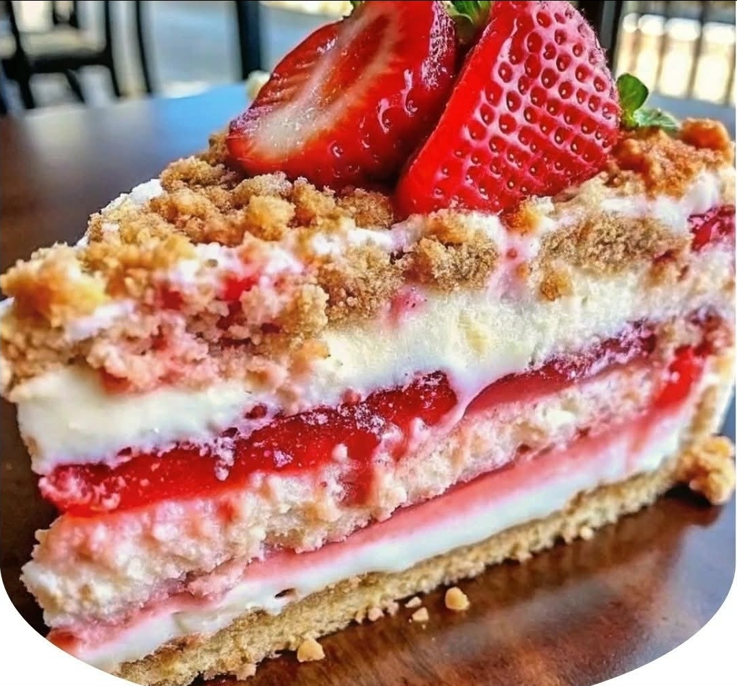 The concept of cheesecake dates back to ancient Greece, where it was served to athletes during the first Olympic Games. The modern no-bake cheesecake emerged in the mid-20th century with the widespread availability of cream cheese and refrigerators. The “strawberry crunch” variation gained popularity in America during the 1970s and 1980s, inspired by classic strawberry shortcake desserts and the nostalgic strawberry crunch ice cream bars many remember from childhood.