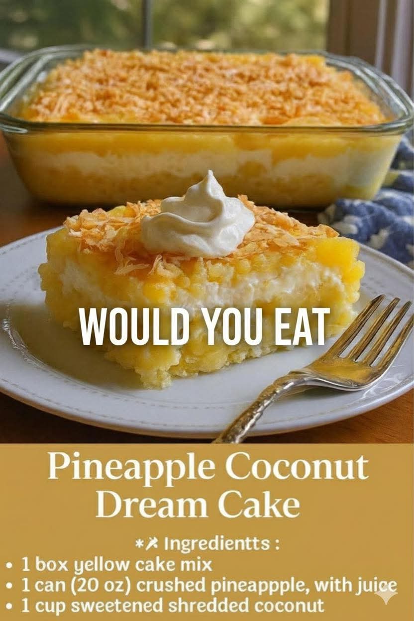 Pineapple Coconut Dream Cake is more than a dessertâitâs a tropical escape. Easy to make, stunning to serve, and impossible to resist, this cake is guaranteed to earn compliments and recipe requests. One bite and youâll understand why itâs called a dream cake.