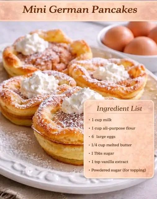 Tiny in stature but grand in presence, the Mini German Pancake is a marvel of the breakfast world. Known also as Dutch Baby Pancakes or Pfannkuchen, these individual puffs are a dramatic and delightful hybrid: part popover, part pancake, and entirely delicious. They bake into golden, bowl-shaped creations with custardy centers and crispy, buttery edges, perfect for cradling your favorite sweet or savory toppings.