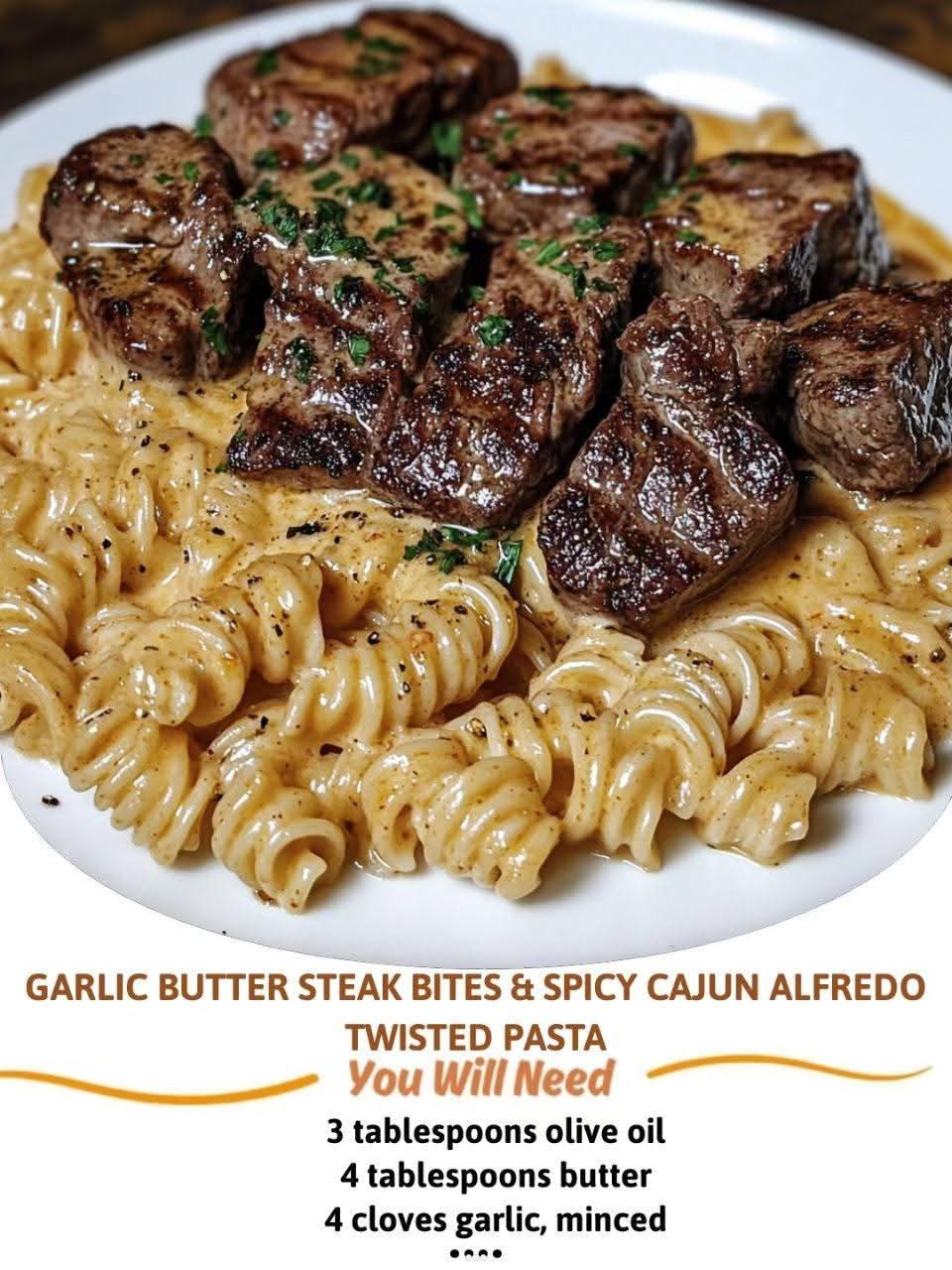 🧄 Garlic Butter Steak Bites & Spicy Cajun Alfredo Twisted Pasta 🍝