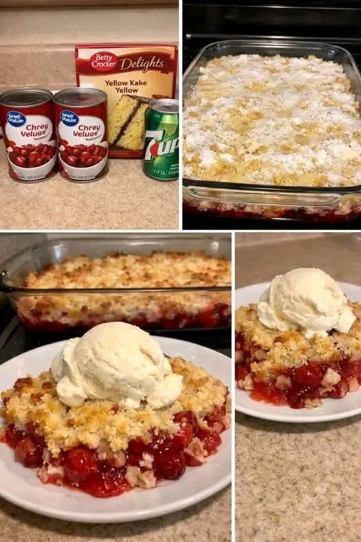 The 7-Up Cobbler Bake has roots in mid-century American home baking. Boxed cake mixes exploded in popularity after the 1940s, and soda-pop desserts became a clever way to make baked goods light and fluffy without complicated techniques. Cherry pie filling, in particular, evokes nostalgia — a flavor often reserved for holidays, family dinners, and Sunday suppers. Over time, this dessert became a go-to “easy bake, crowd-pleaser” recipe for generations.