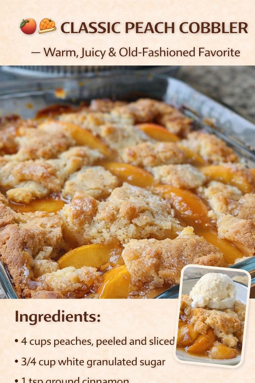 šš„§ Classic Peach Cobbler ā Warm, Juicy & Old-Fashioned Favorite