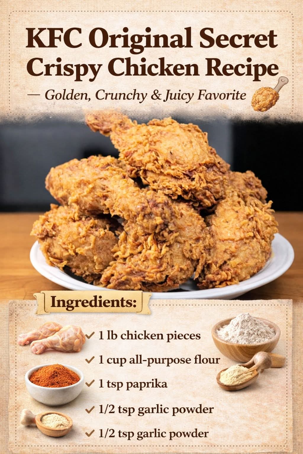 This KFC-style crispy chicken is the ultimate comfort food — crunchy, flavorful, and juicy with every bite. Perfect for family meals, parties, or a special treat, it brings people together over a shared love for golden, satisfying fried chicken.