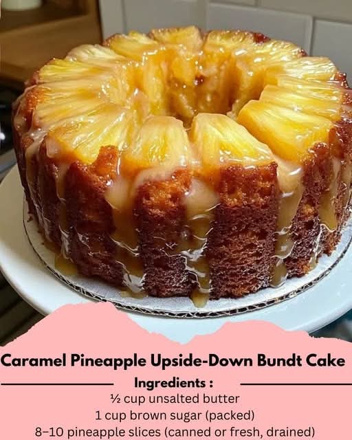 Caramel Pineapple Upside-Down Bundt Cake is a show-stopping dessert that blends nostalgia with elegance. The rich caramel topping melts into golden pineapple slices, while the tender vanilla cake absorbs every drop of buttery sweetness. Baked in a Bundt pan, this classic favorite gets a dramatic twist — perfect for celebrations, family gatherings, or when you simply want a dessert that feels special yet comforting.