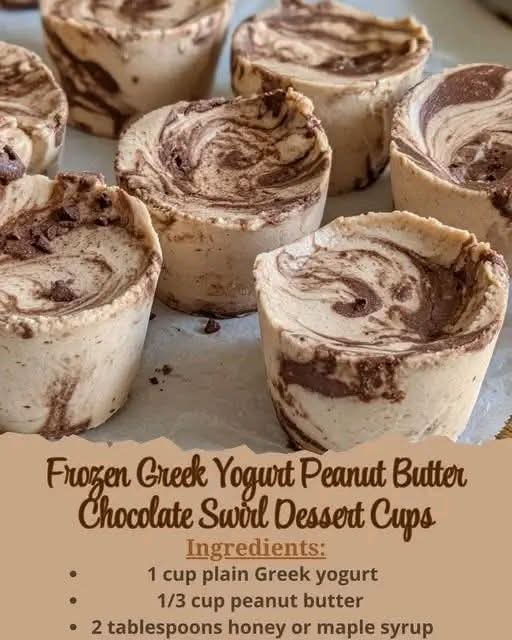 🍫🥜 Frozen Greek Yogurt Peanut Butter Chocolate Swirl Dessert Cups