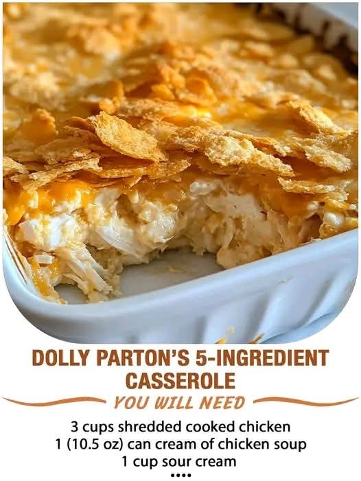 Dolly Parton’s 5-Ingredient Casserole is more than just a recipe; it’s a testament to the enduring power of simple, heartfelt cooking. It doesn’t strive for gourmet accolades but instead delivers on a timeless promise: a delicious, comforting meal that brings people together. In a world that’s often overly complex, this casserole is a delicious reminder that some of the best things in life—and in food—are wonderfully straightforward. So, preheat your oven, and get ready for a standing ovation at your kitchen table. As Dolly might say, it’s enough to make you feel “9 to 5” happy after a long day.