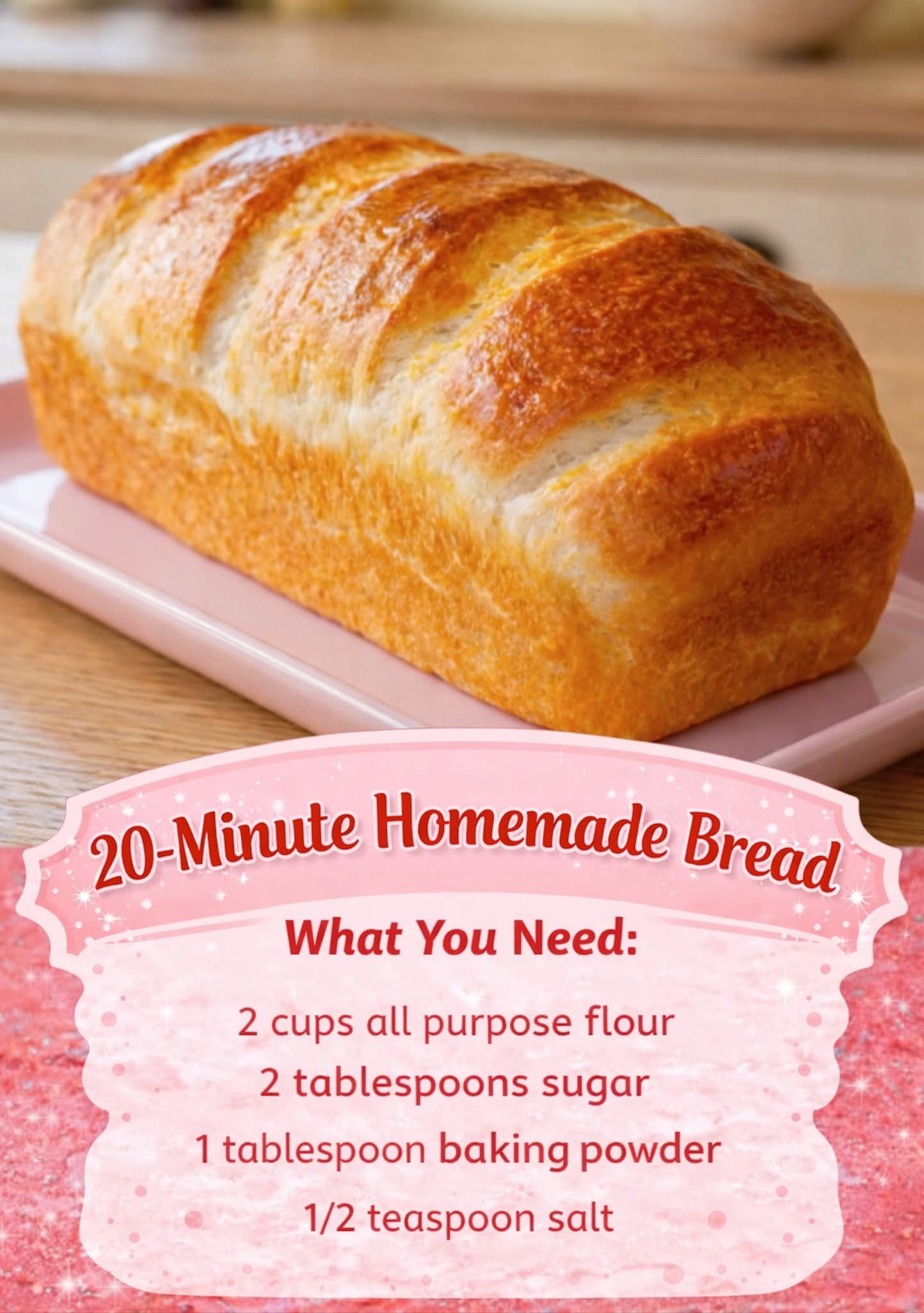 In just 20 minutes, you can have fresh, homemade bread that rivals anything from a bakery. Whether it’s breakfast, a mid-day snack, or a quick side for dinner, this bread is proof that simplicity can be extraordinary. No long waits, no yeast anxiety—just real, comforting bread made your way.
