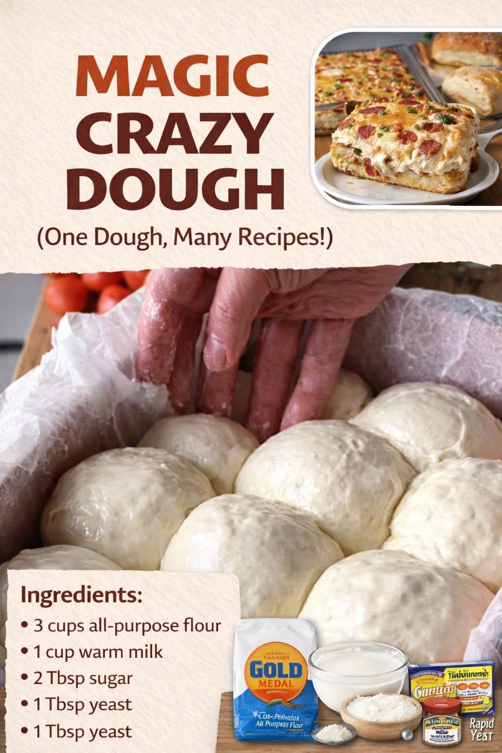 Absolutely! Let’s make this a full, detailed “Magic Crazy Dough” recipe—versatile, soft, and perfect for countless homemade creations. 🍞✨