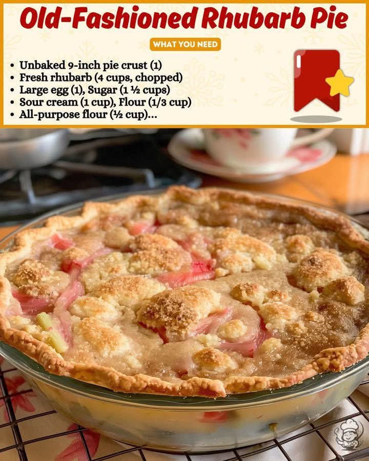 🌸 Old-Fashioned Creamy Rhubarb Pie
